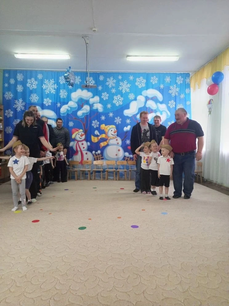 " Берёзка" в средней группе прошло спортивное соревнование с участием пап и дедушки. Самым главным гостем стал дедушка Димы Н -Владимир Николаевич. Он очень интересно рассказал о своей службе в армии, принял активное участие во всех конкурсах. Показал бодрость, смекалку, и всем подарил отличное настроение. Все ребята болели за победу дедушки.